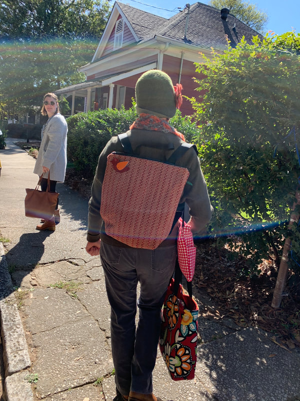 We collect fabric – sample pieces, remnants, pre-loved fabric. It’s great when people send us scraps from curtains and upholstery projects. We also collect stories, including those people tell us about what they use their Bledsoe bags for.